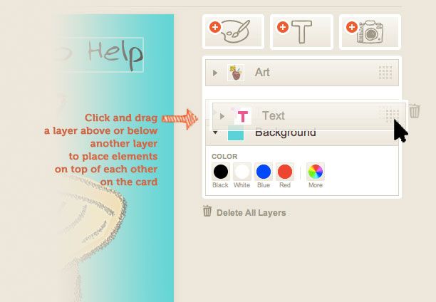 Change the order of elements on your card by dragging the layers above or below each other.